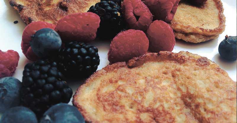 מערבבים את כל המצרכים במטריפה. מחממים מחבת מתאימה עם 1 כפית שמן קוקוס ויוצקים לתוכה באמצעות מצקת קטנה את הבלילה תוך שיוצרים פנקייקים קטנים. כשהפנקייק מבעבע בצד אחד הופכים לכחצי דקה נוספת. לשים לב שהחום לא גבוה מדי. אפשר לשחק עם החום כדי לא לשרוף וליצירת פנקייקס מושלמים. מומלץ להגיש עם מעט פירות יער טריים, זה מאזן את המתיקות, וכמות הפחמימה בהם ממש נמוכה.