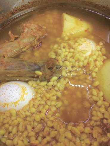 מטגנים את הבצל ומעליו מניחים את הבשר. מסביב בצורה מסודרת מניחים את הקטניות, הגריסים או החיטה (או גם וגם), תפוחי אדמה, הבטטה והביצים, התמר והשום השלם. מוסיפים כף רסק עגבניות ואת התבלינים וממלאים מים עד לכיסוי התכולה. מרתיחים את החמין ומנמיכים את האש למשך שעה וחצי – שעתיים. מעבירים את הסיר לפלטה עד למחרת.