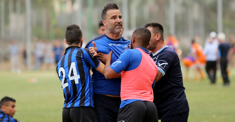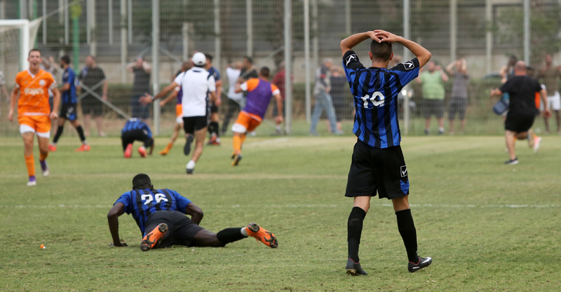 דווקא מתוך הייאוש, ובדיוק כשנחיל נמלים הפציע במעלה היציע והוסיף צריבות ברגליים לצד הלחות הבלתי נסבלת והיתושים, חזרה הפועל משום מקום. איתי לוי, שבחר משום מה בנעליים כתומות מול יריבה בצבע זהה, שלח בדקה ה-80 כדור חופשי נהדר מ-20 מטרים ואיזן את התוצאה, 1:1. שחקני האורחת נשכבו פעם אחר פעם על הדשא במטרה לנגוס בשעון והיו”ר איציק כהן, שהתקשה לעמוד בלחץ, הורחק לקראת הסיום. שלוש דקות בתוך תוספת הזמן (מתוך שש) שפשף הקהל עיניים כשהמחליף אור שטיין נגח בזינוק פנימה, השלים מהפך וטס אל הגדר כשהוא מסמן בידיו לב לשרופים בכחול, רגע לפני שקרס תחת דבוקת השחקנים שאצה לברך אותו, 1:2 ששווה כרטיס למבחנים.